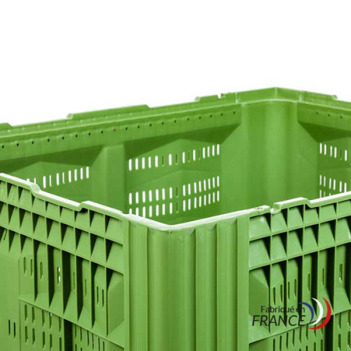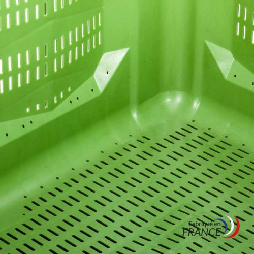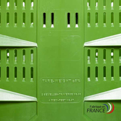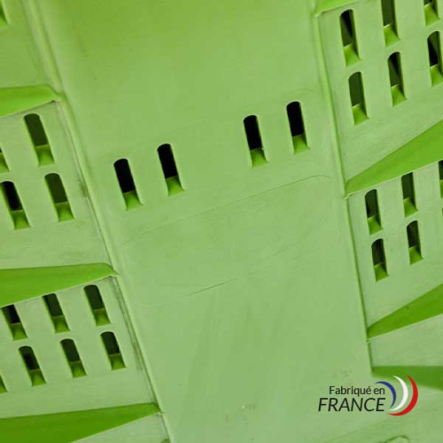 Fabriquée en France, cette caisse-palette à parois ajourées convient au stockage et au transport de denrées alimentaires et de produits industriels. Sa structure ajourée favorise l’aération du contenu, réduisant ainsi l’accumulation d’humidité et garantissant une meilleure conservation des marchandises, notamment des produits alimentaires. Robuste et stable grâce à ses 2 semelles, elle est résistante aux chocs, aux produits chimiques, aux UV ainsi qu'aux variations de température. Elle peut ainsi être utilisée en intérieur comme en extérieur.