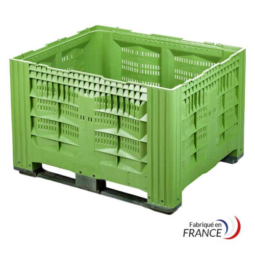 Caisse-palette parois ajourées 1200 x 1000 x 785 mm - 2 semelles