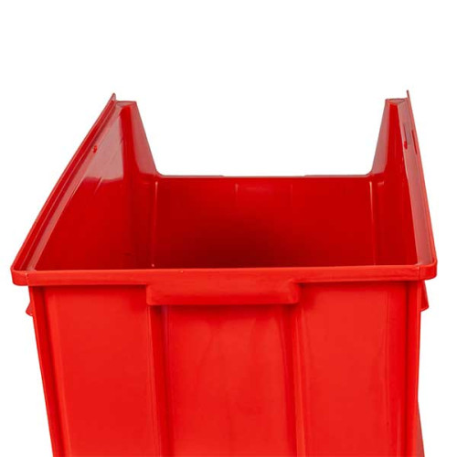 The red plastic bin from the MLT series is certified for food contact. It's designed to optimize storage, organization, and picking. Made of polypropylene, it boasts excellent resistance to shocks, temperature variations, and chemicals. Perfectly stable and robust, it can be stacked on a work surface or placed on shelves. The front opening allows for quick visualization of the contents and easy handling. Ergonomic, unyielding, and extremely durable, it's suitable for all work environments and can withstand heavy use.